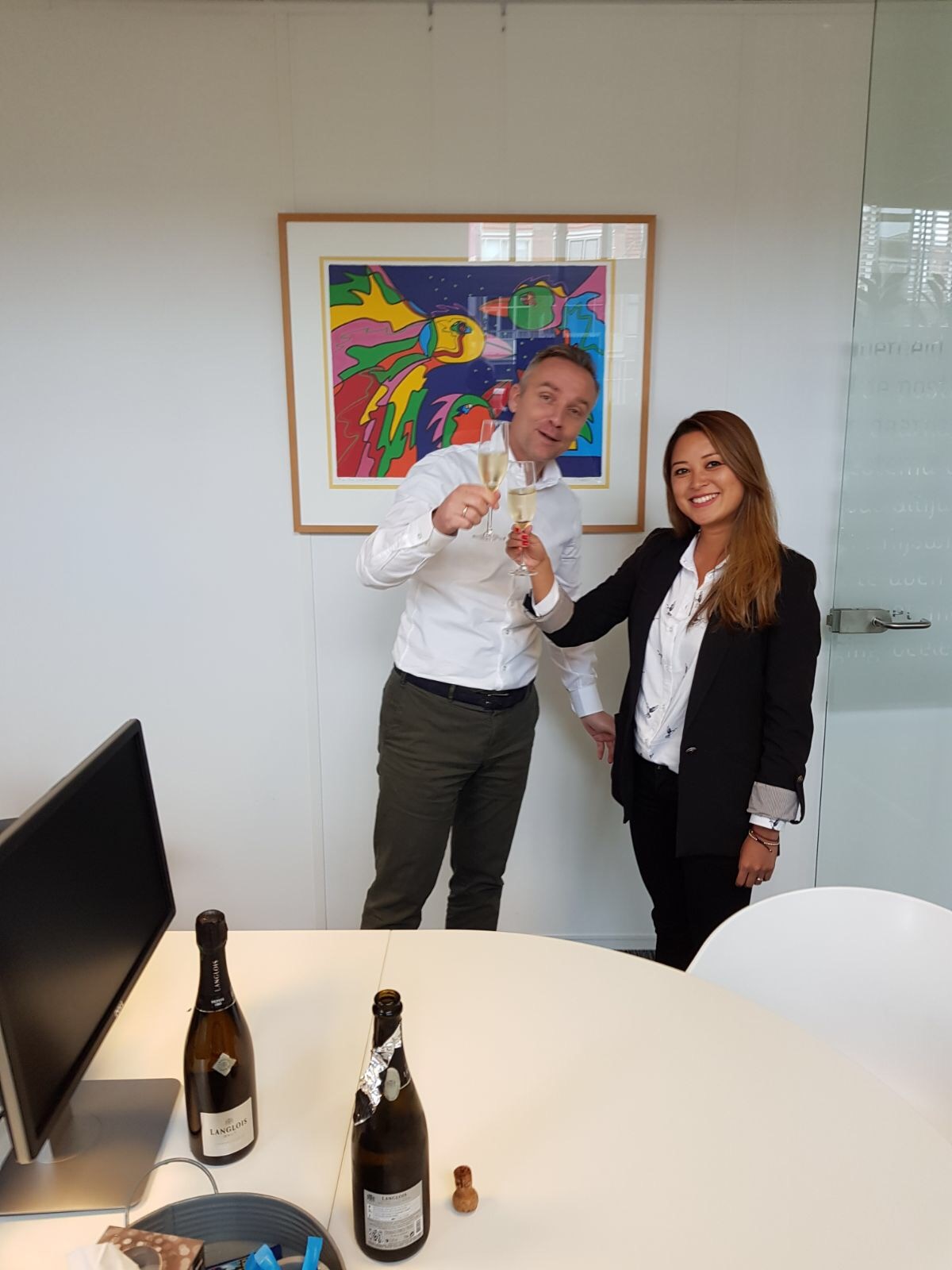 Theo Peppink, hun persoonlijk hypotheekadviseur, verraste Christina op ons kantoor met champagne. Haar man kon er niet bij zijn omdat hij momenteel met het Nederlands Cricket Team in Zuid-Afrika aan het trainen is – succes Pieter!